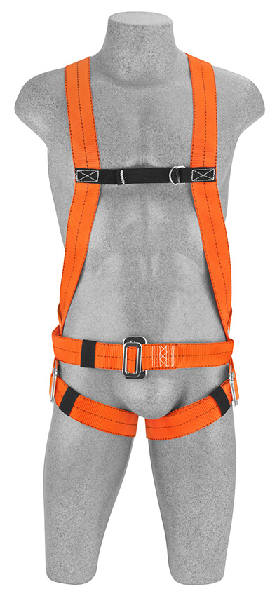Cinto para-quedista em fita de poliéster, possui 1 argola dorsal em “D" para retenção de quedas e regulagem nas pernas.