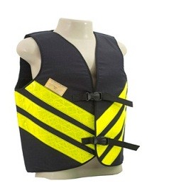 Colete de segurança confeccionado em tecido 100% poliamida de alta resistência; costuras em material da mesma composição do tecido e faixas refletivas – Conforme Padrão DENATRAN.