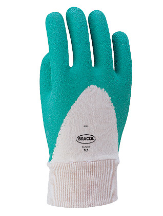 | Luva confeccionada com suporte textil 100% algodão; palma e dedos com revestimento em látex natural; punho de malha elastizado.